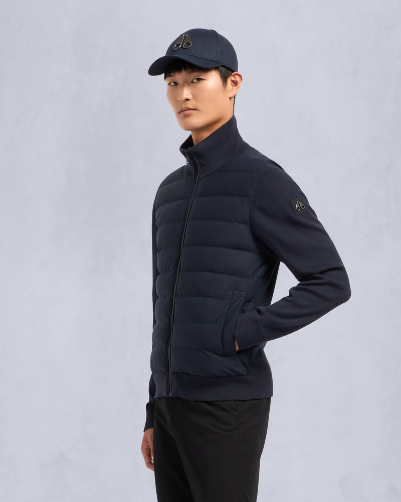This Hybrid combines the warmth of a down-filled bodice with the comfort of sweater sleeves. Perfect for transitional weather, it offers versatility and style in one sleek package.